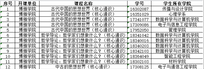 3、需要参加《哲学导论:哲学家们想做什么?》课程重考的同学注意:若未交期中论文或未交期末论文,须于3月29日前补交至liuhaichuckle@163.com邮箱,下述是没有交论文的学生学号名单: